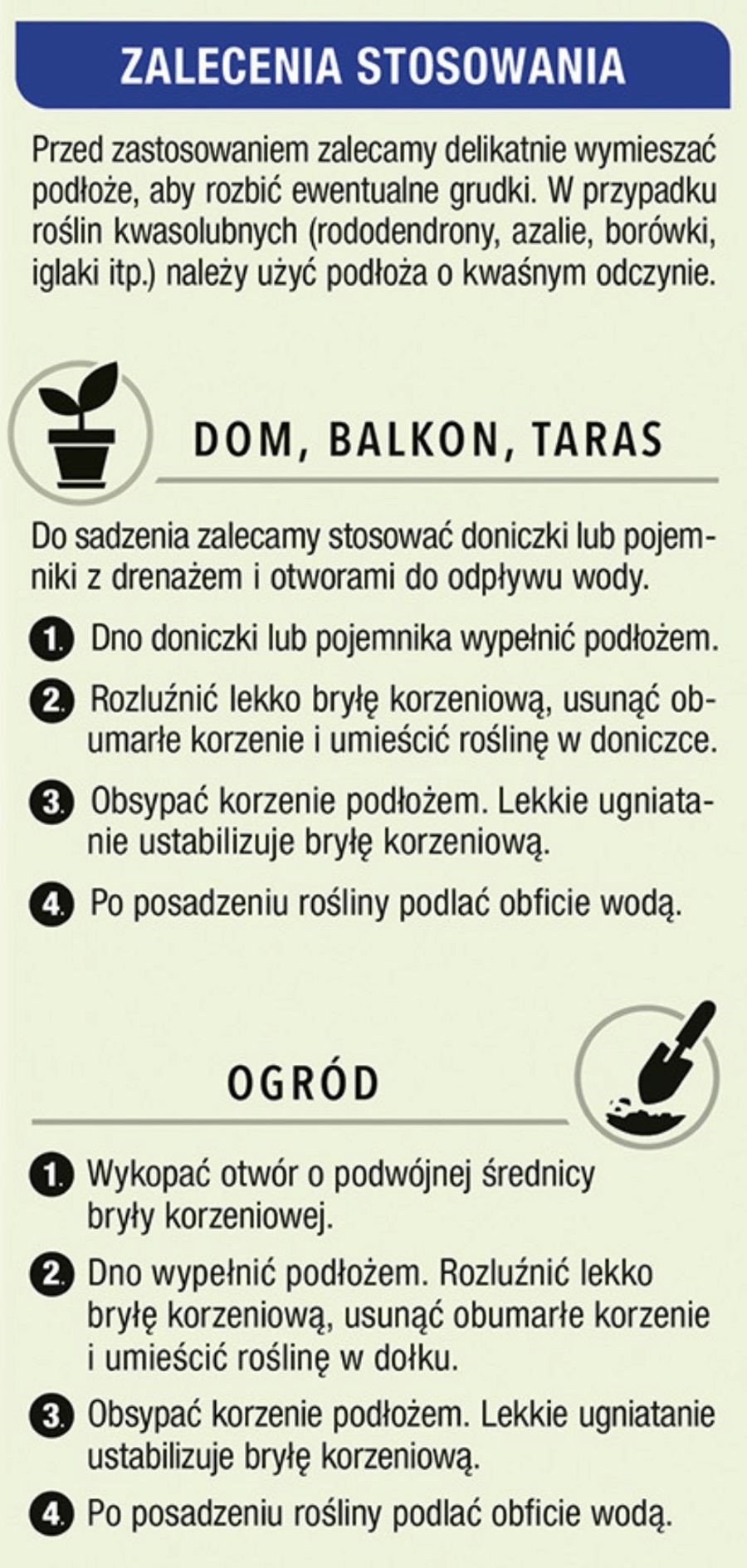 Termin stosowania: rośliny najlepiej przesadzać do świeżego podłoża od marca do października. W wyjątkowych sytuacjach (np. przelanie, choroby roślin) można to robić przez cały rok.