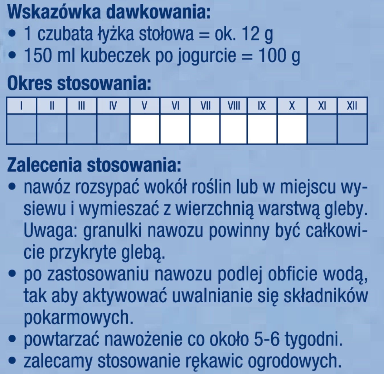 - łatwa aplikacja dzięki strukturze rozpuszczających się granulek