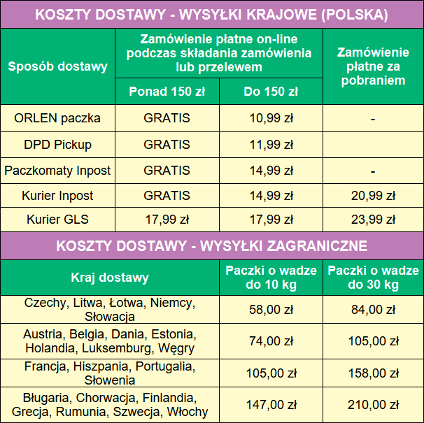 Zakupy ponad kwotę 150 zł opłacane z góry są premiowane darmową wysyłką!*
